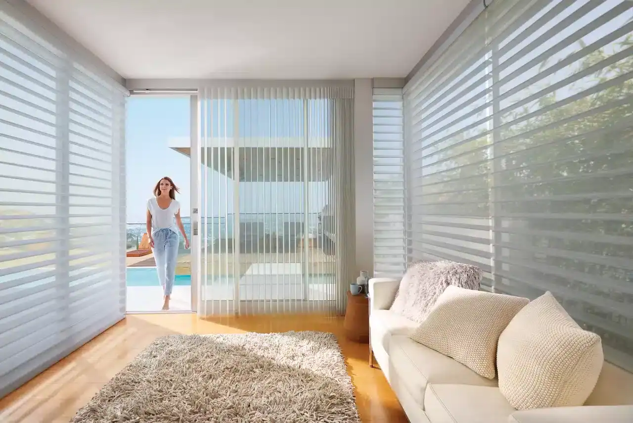 Silhouette® Sheer Shades deliver gentle light management and refined aesthetics through their trademark layout of floating fabric vanes held between two sheer panels. This specialized build enables sunlight to softly enter the room while protecting your privacy and minimizing harsh glare. By simply tilting the vanes, you can modify the harmony between brightness and seclusion during the day, which produces a mellow and diffused radiance that improves any interior space.