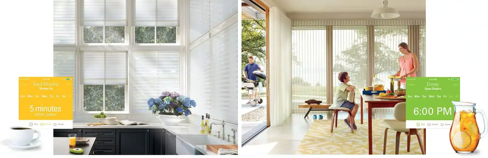 Effortlessly control your shades with the push of a button, a tap on your mobile device, through automation, or using voice commands.